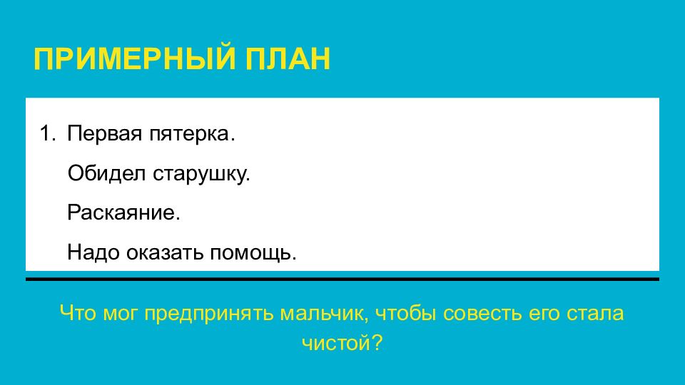 ПРИМЕРНЫЙ ПЛАН Что мог предпринять мальчик, чтобы совесть его стала чистой?