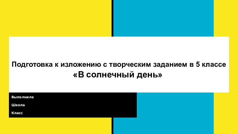 Первый слайд презентации: Подготовка к изложению с творческим заданием в 5 классе «В солнечный день»