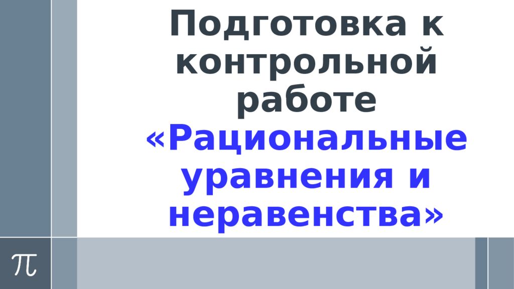 Первый слайд презентации: Подготовка к контрольной работе «Рациональные уравнения и неравенства»
