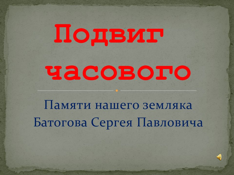 Памяти нашего земляка Батогова Сергея Павловича Подвиг часового