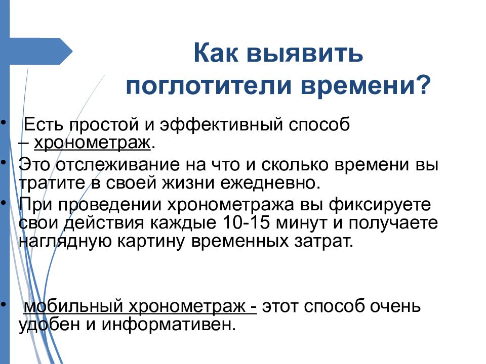 Слайд 13: Как выявить поглотители времени?