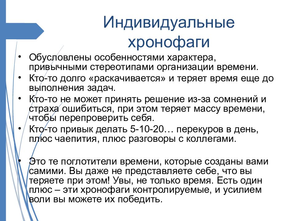 Слайд 12: Индивидуальные хронофаги