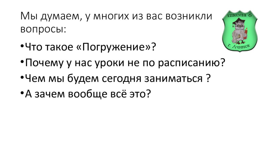 Что такое «Погружение»? Почему у нас уроки не по расписанию? Чем мы будем сегодня заниматься ? А зачем вообще всё это?