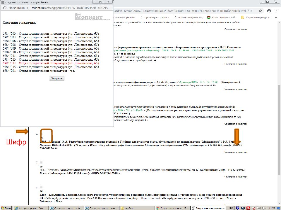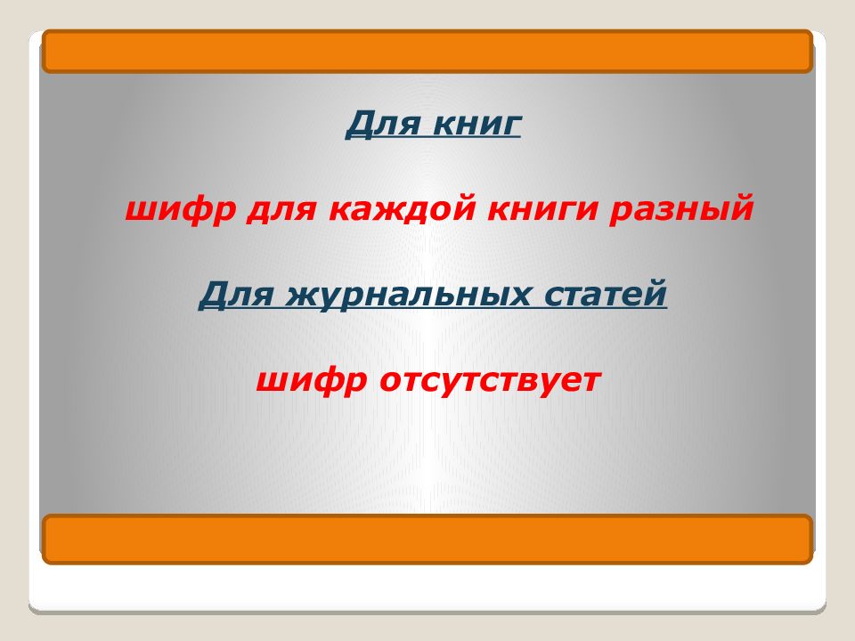Для книг шифр для каждой книги разный Для журнальных статей шифр отсутствует