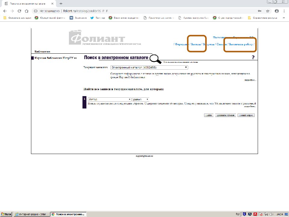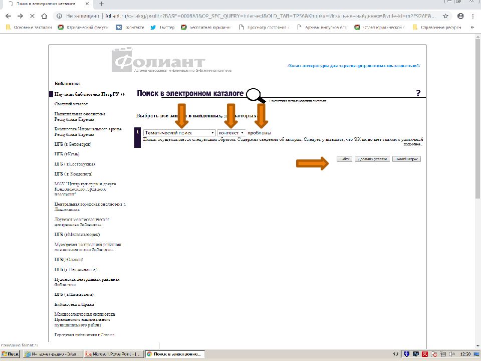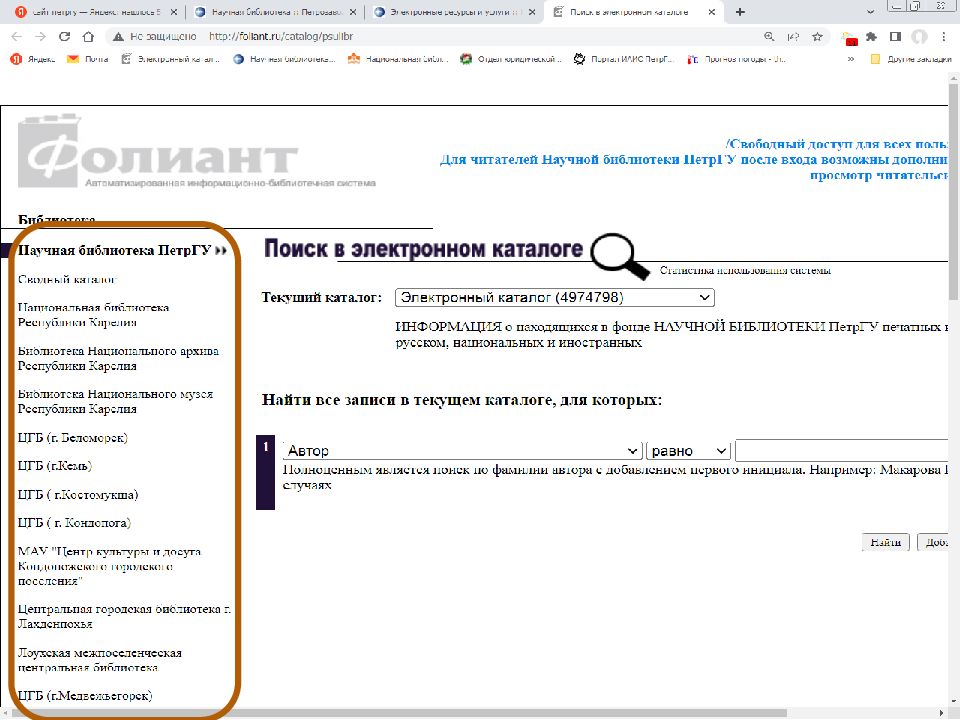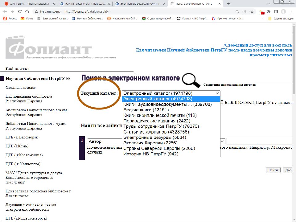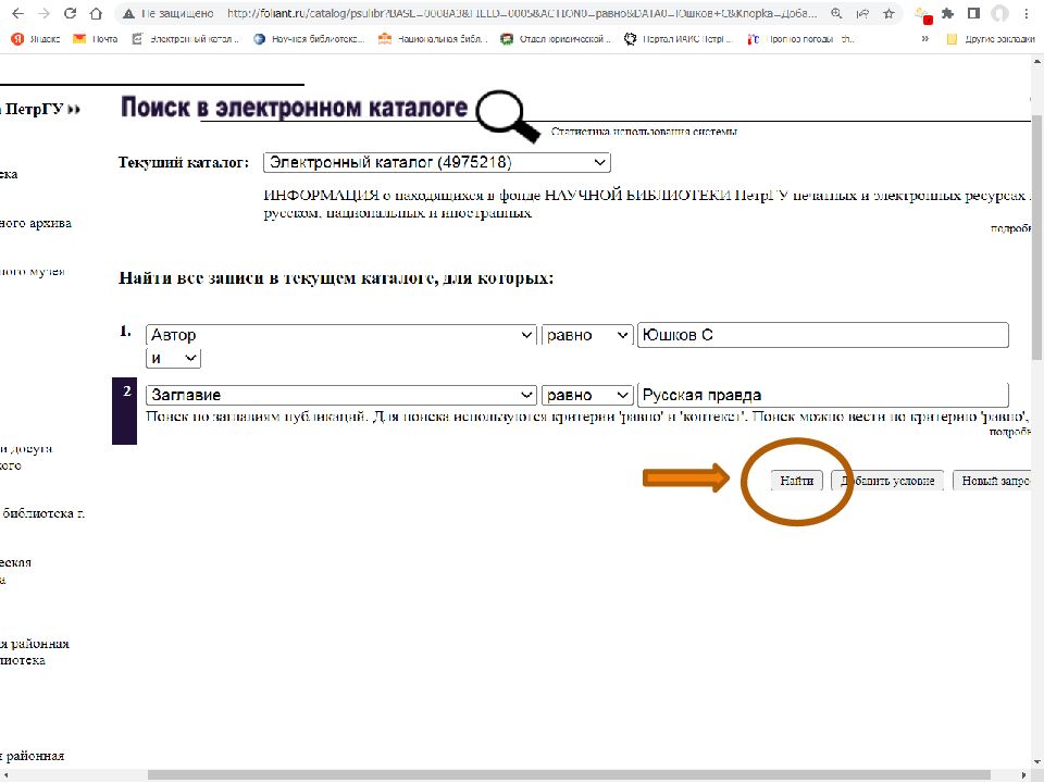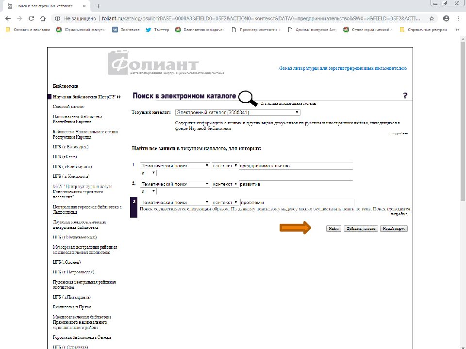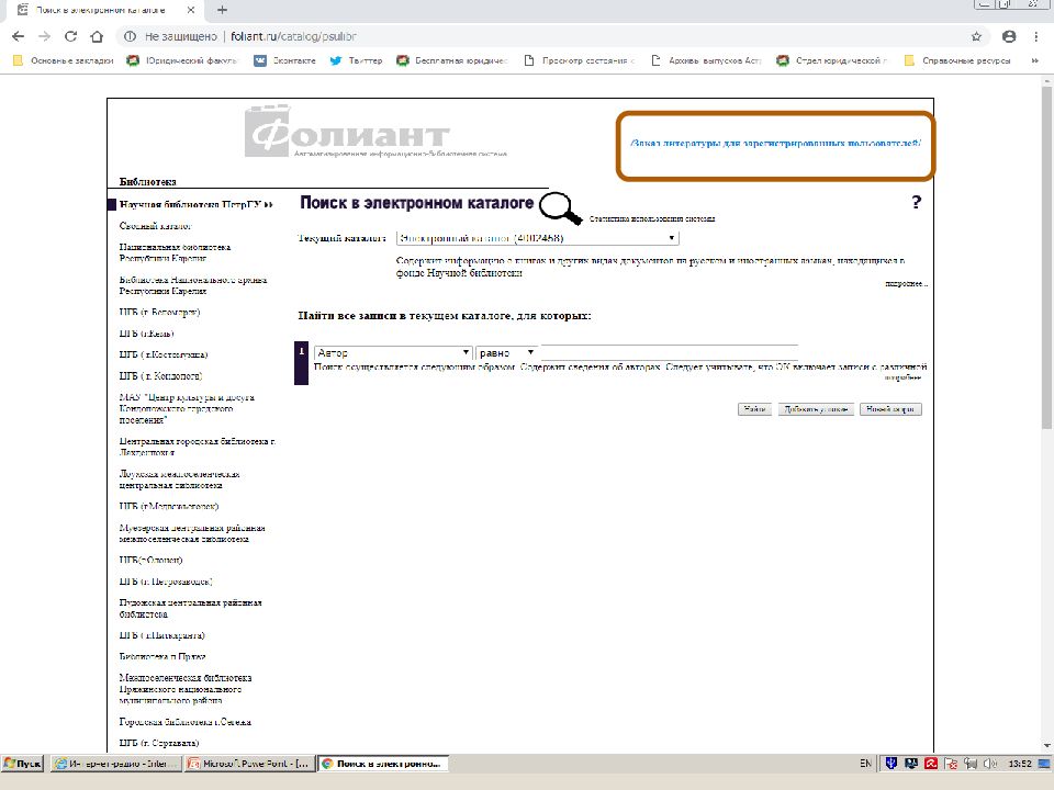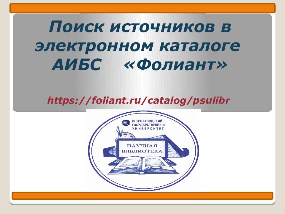 Первый слайд презентации: Поиск источников в электронном каталоге АИБС «Фолиант» https://foliant.ru/catalog/psulibr