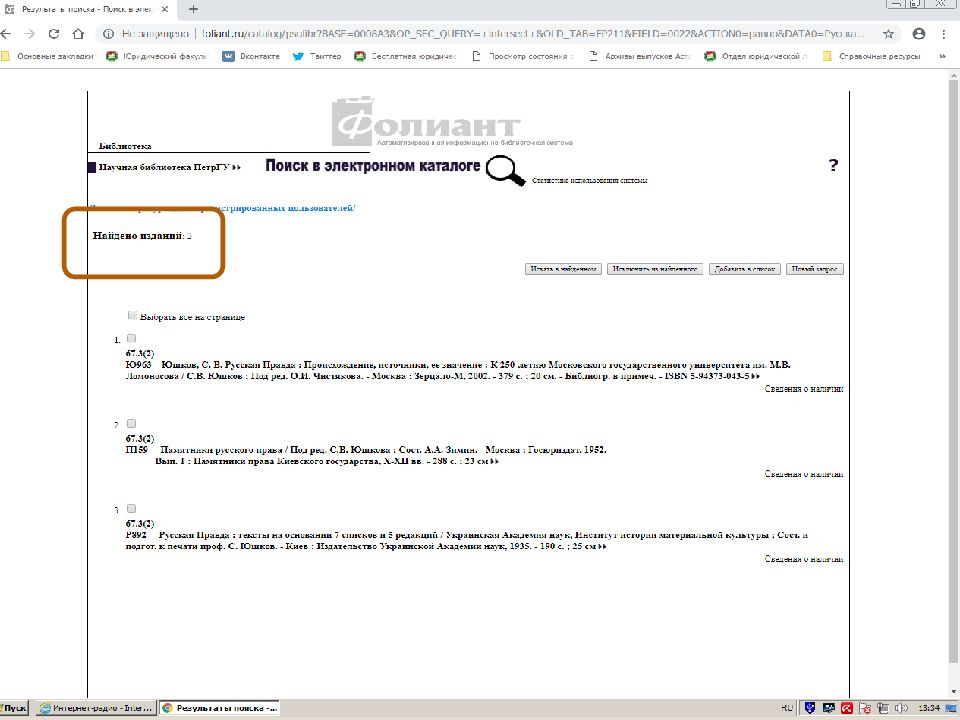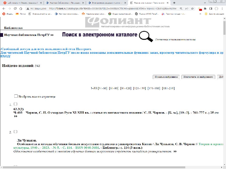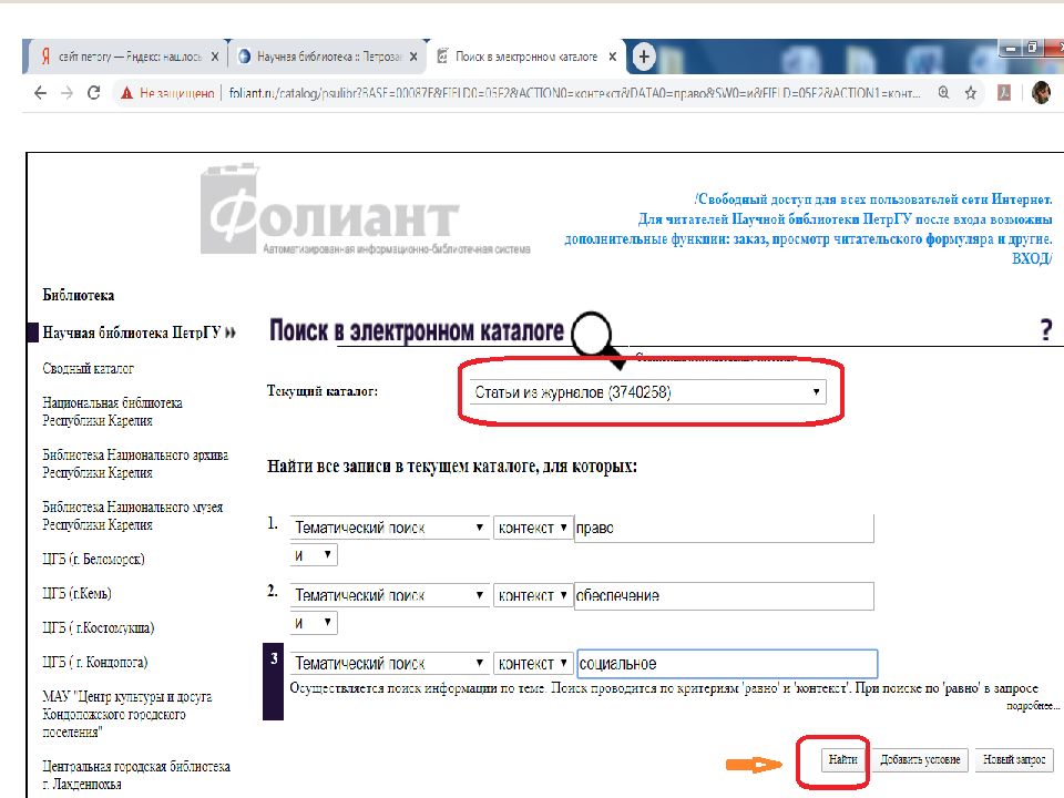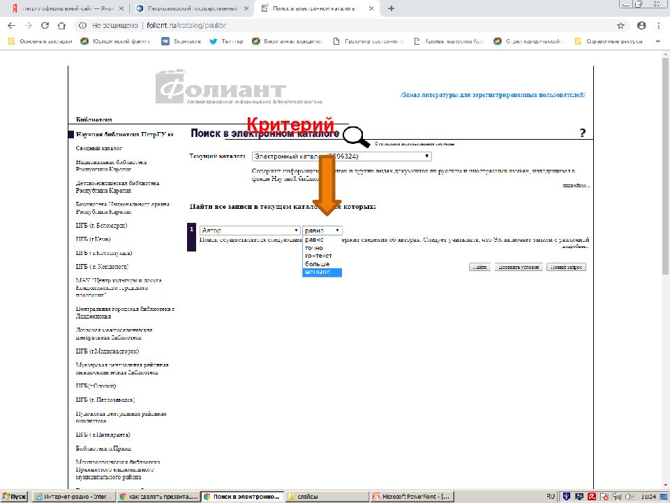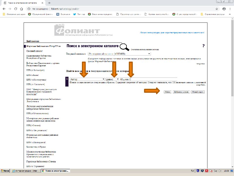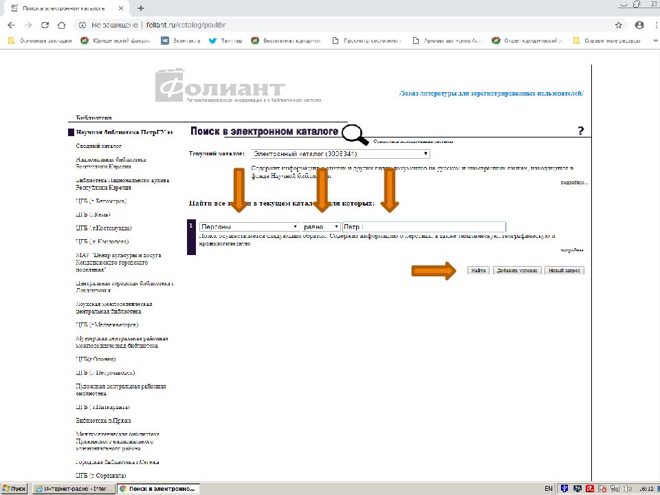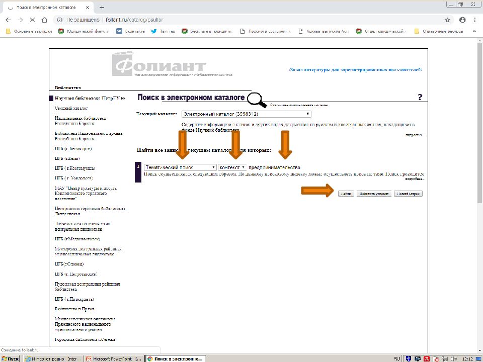 Первый слайд презентации: Поиск источников в электронном каталоге АИБС «Фолиант» https://foliant.ru/catalog/psulibr