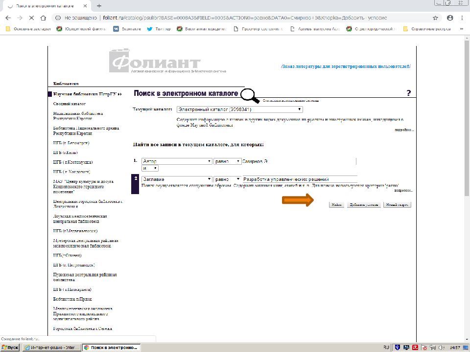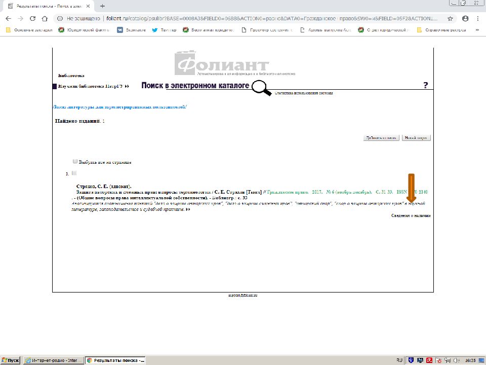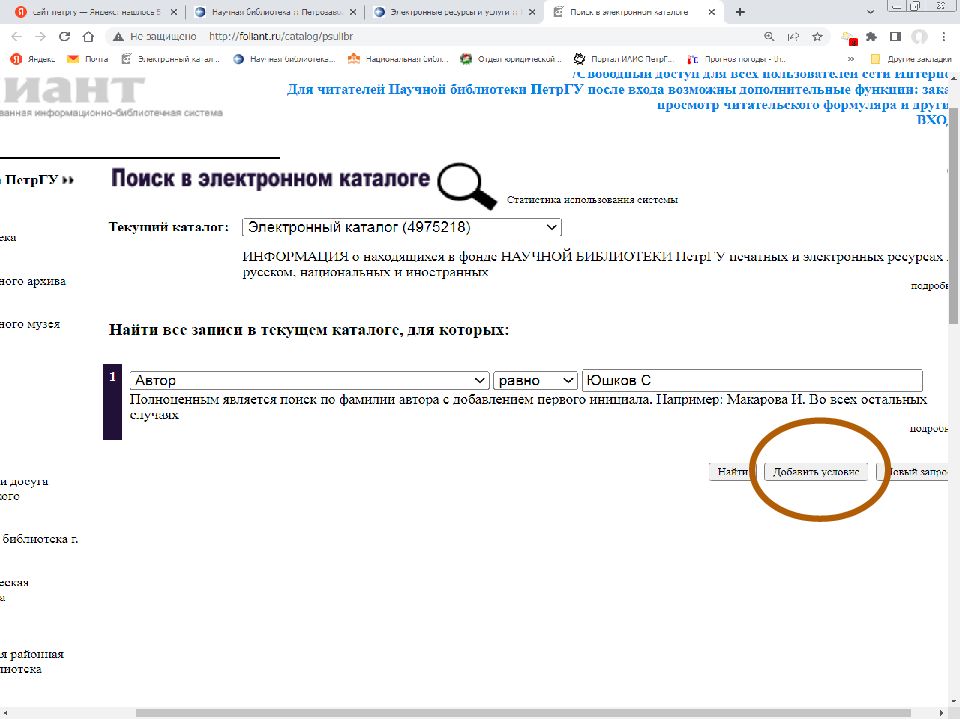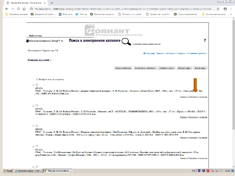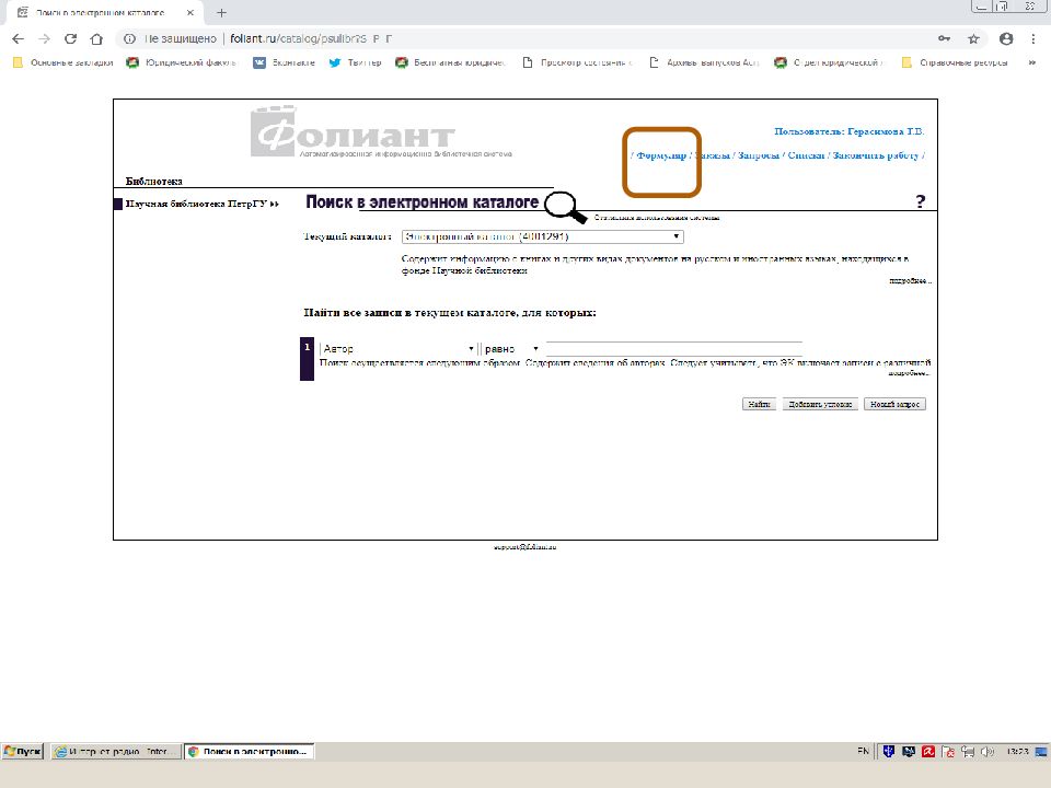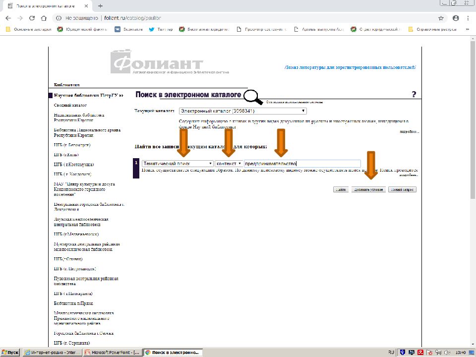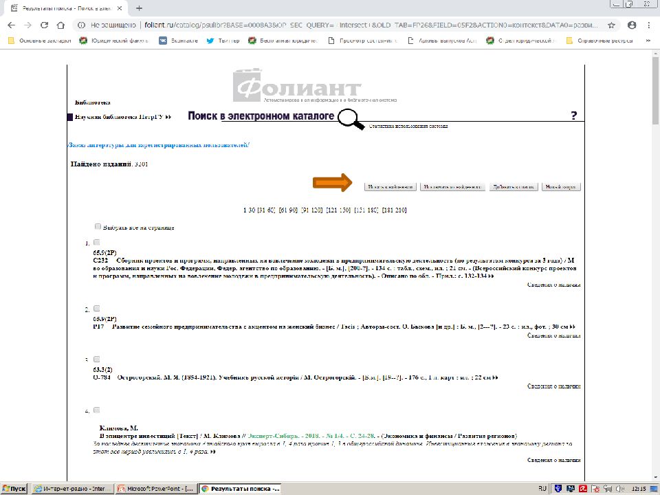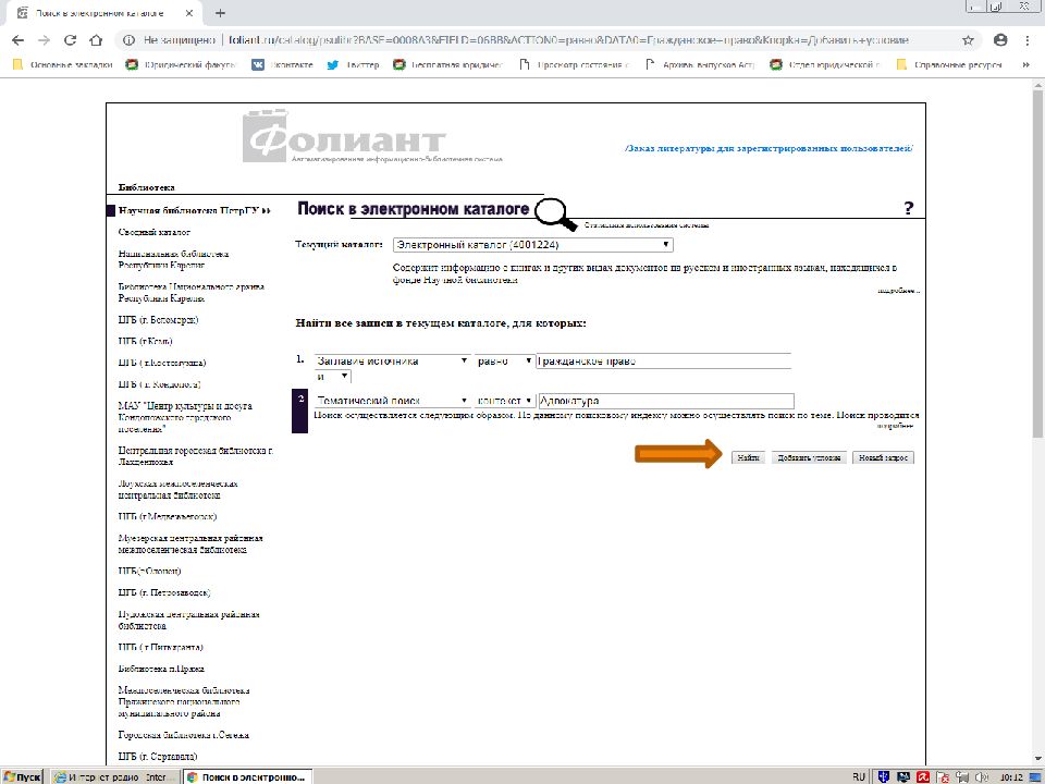 Первый слайд презентации: Поиск источников в электронном каталоге АИБС «Фолиант» https://foliant.ru/catalog/psulibr