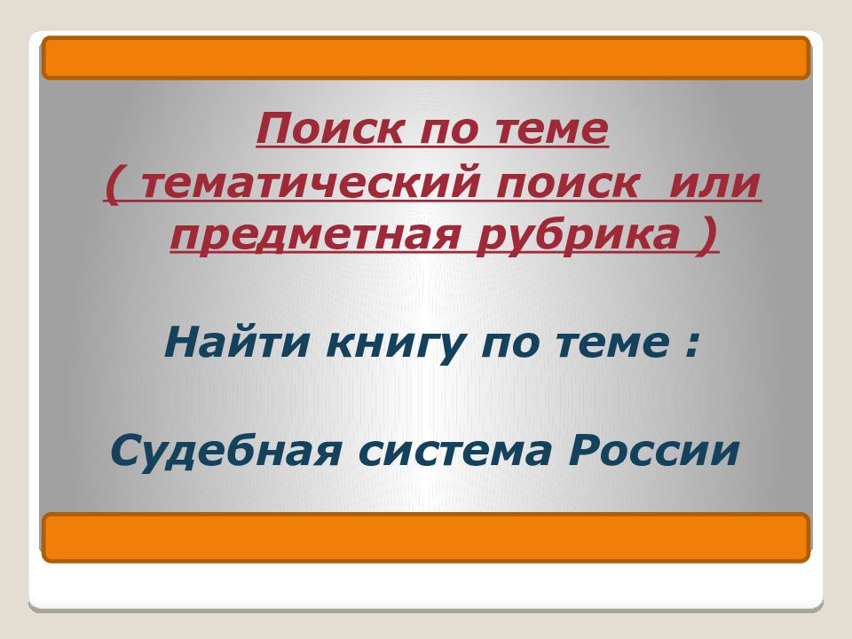 Поиск по теме ( тематический поиск или предметная рубрика ) Найти книгу по теме : Судебная система России