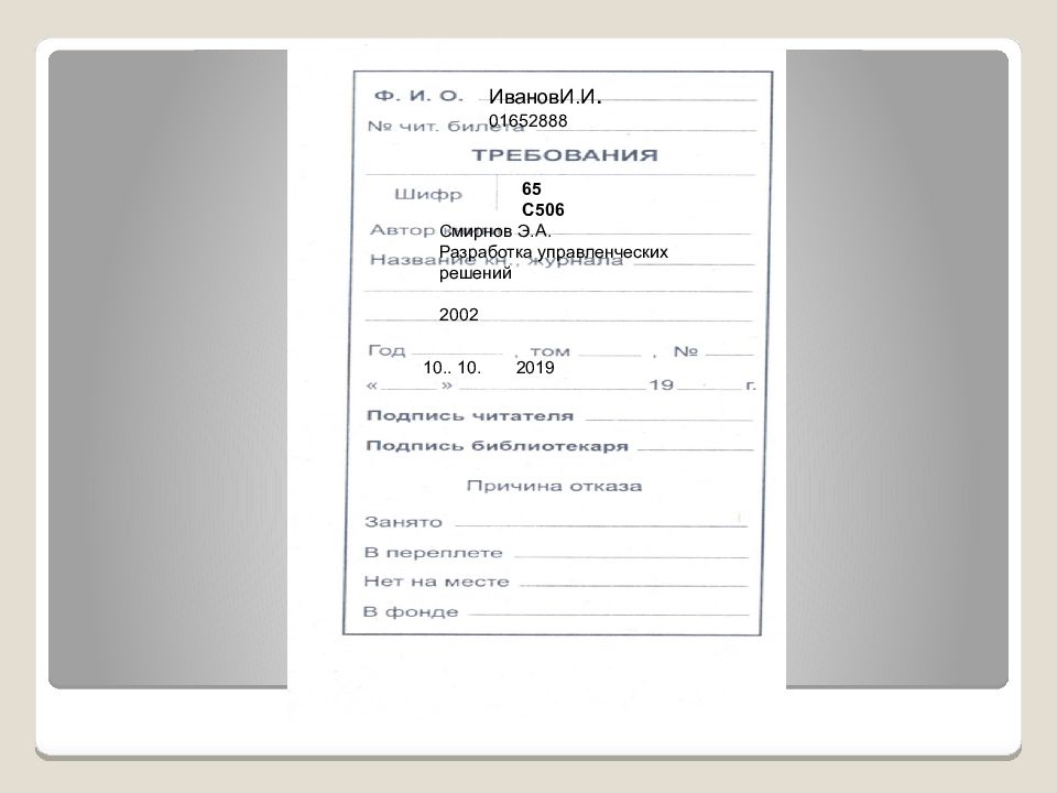 ИвановИ.И. 01652888 65 С506 Смирнов Э.А. Разработка управленческих решений 2002 10.. 10. 2019