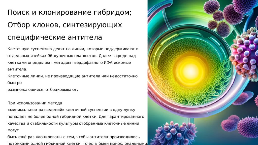 Слайд 8: Поиск и клонирование гибридом ; Отбор клонов, синтезирующих специфические антитела