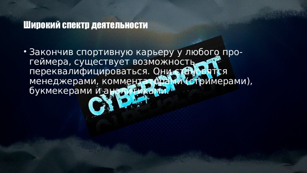 Закончив спортивную карьеру у любого про-геймера, существует возможность переквалифицироваться. Они становятся менеджерами, комментаторами (стримерами), букмекерами и аналитиками.