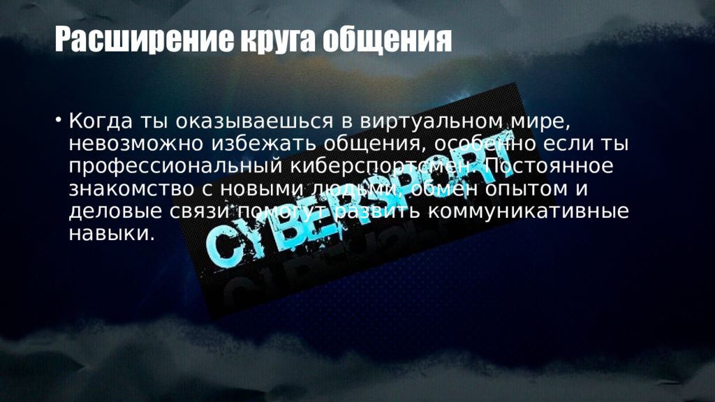 Когда ты оказываешься в виртуальном мире, невозможно избежать общения, особенно если ты профессиональный киберспортсмен. Постоянное знакомство с новыми людьми, обмен опытом и деловые связи помогут развить коммуникативные навыки.