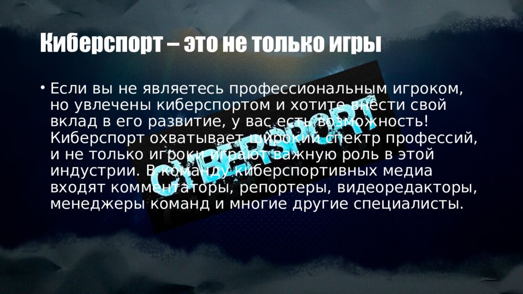 Если вы не являетесь профессиональным игроком, но увлечены киберспортом и хотите внести свой вклад в его развитие, у вас есть возможность! Киберспорт охватывает широкий спектр профессий, и не только игроки играют важную роль в этой индустрии. В команду киберспортивных медиа входят комментаторы, репортеры, видеоредакторы, менеджеры команд и многие другие специалисты.