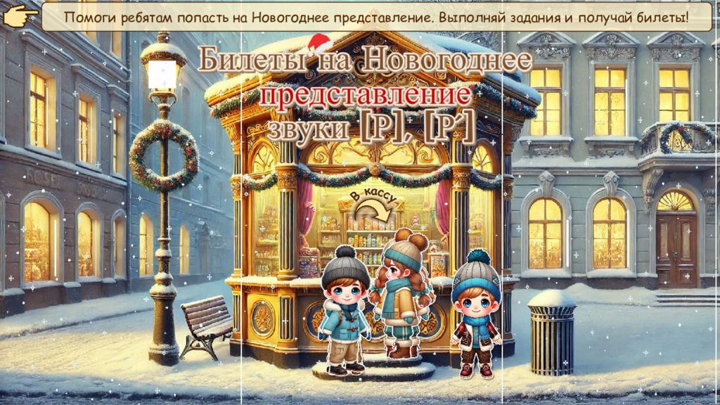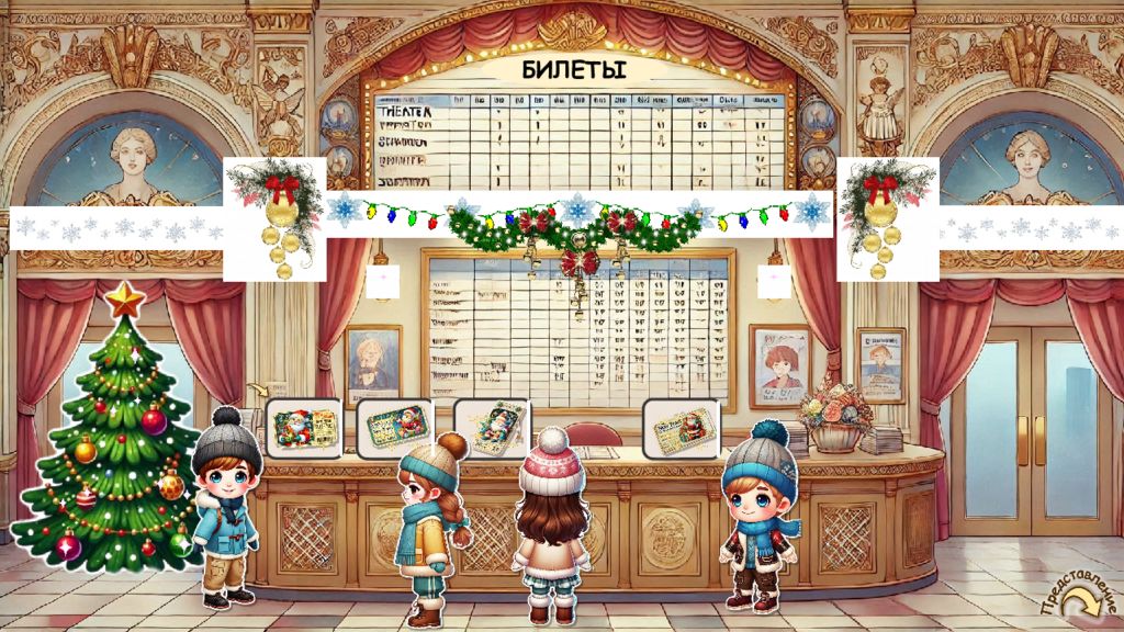 Помоги ребятам попасть на Новогоднее представление. Выполняй задания и получай билеты!
