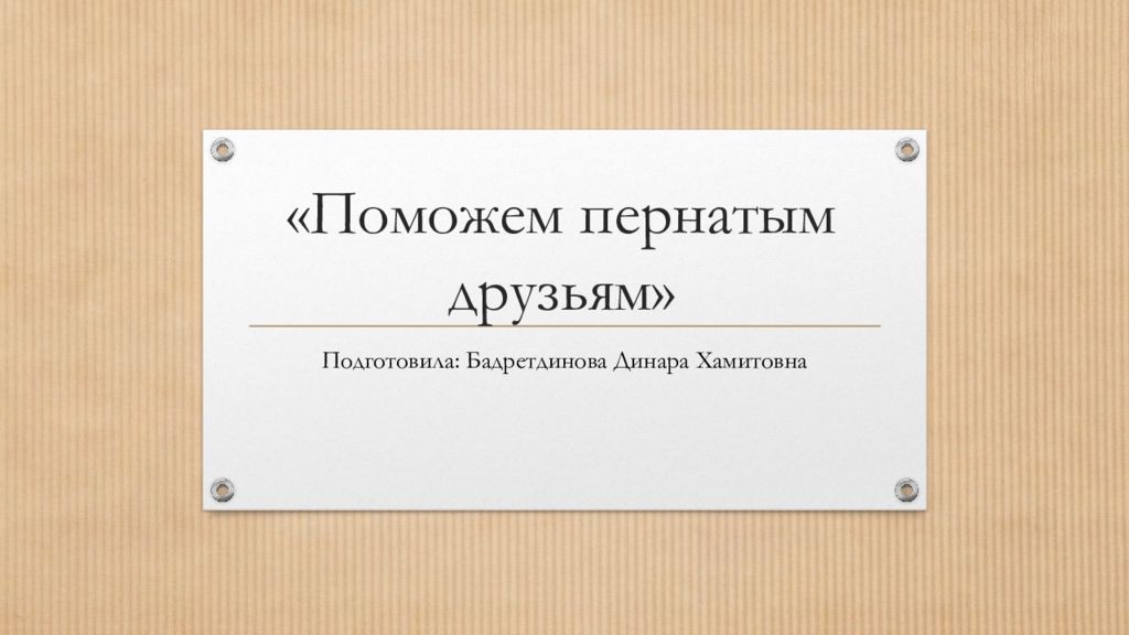 Подготовила: Бадретдинова Динара Хамитовна «Поможем пернатым друзьям»