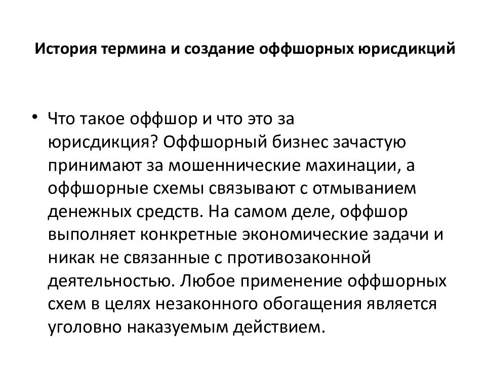 Первый слайд презентации: Понятие оффшорного бизнеса и оффшорной деятельности