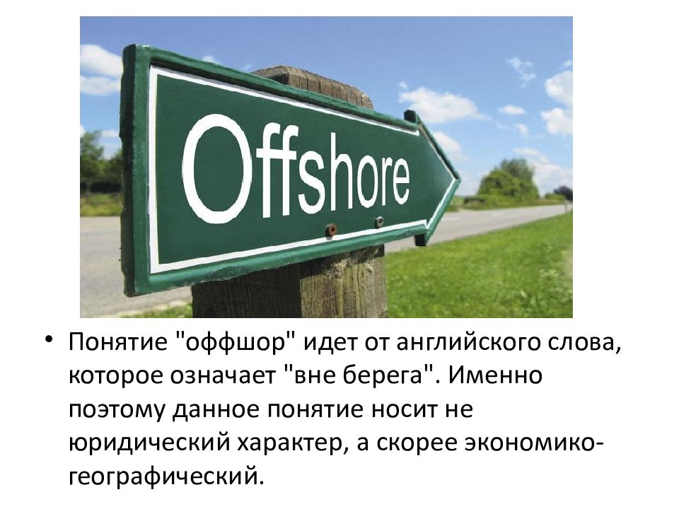 Понятие "оффшор" идет от английского слова, которое означает "вне берега". Именно поэтому данное понятие носит не юридический характер, а скорее экономико-географический.