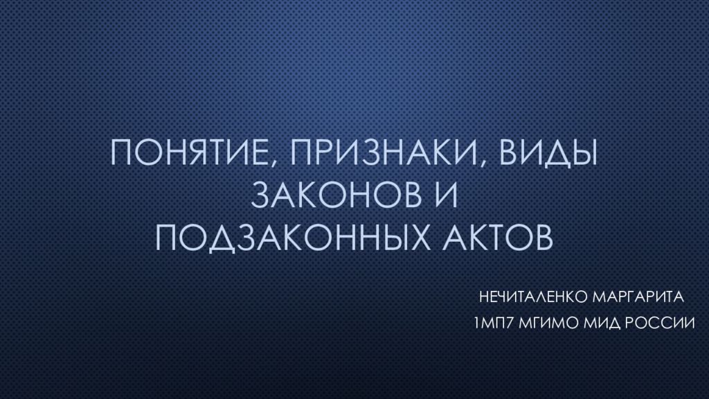 Первый слайд презентации: Понятие, признаки, виды законов и подзаконных актов