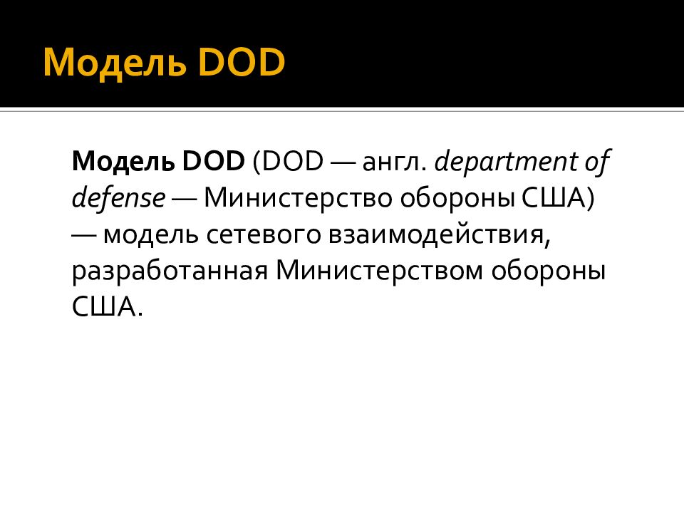 Модель DOD (DOD — англ. department of defense — Министерство обороны США) — модель сетевого взаимодействия, разработанная Министерством обороны США.