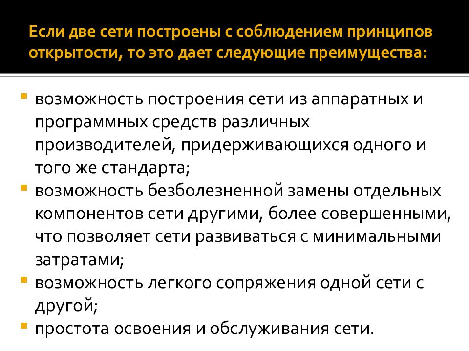 Слайд 15: Если две сети построены с соблюдением принципов открытости, то это дает следующие преимущества :