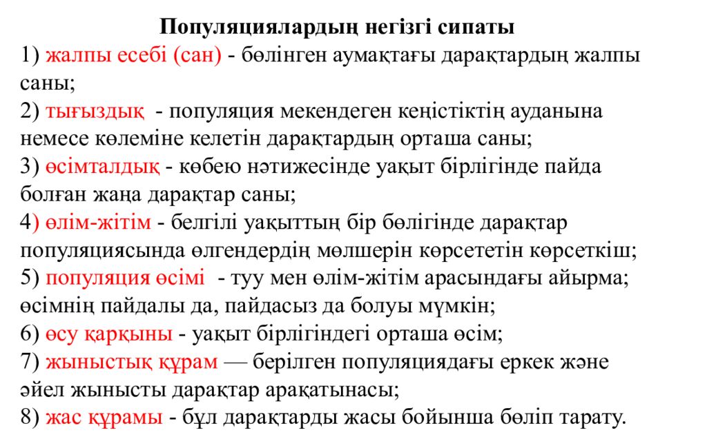 Слайд 3: Популяцияның негізгі сипаттамалары