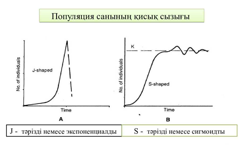 Популяция санының қисық сызығы J - тәрізді немесе экспоненциалды S - тәрізді немесе сигмоидты