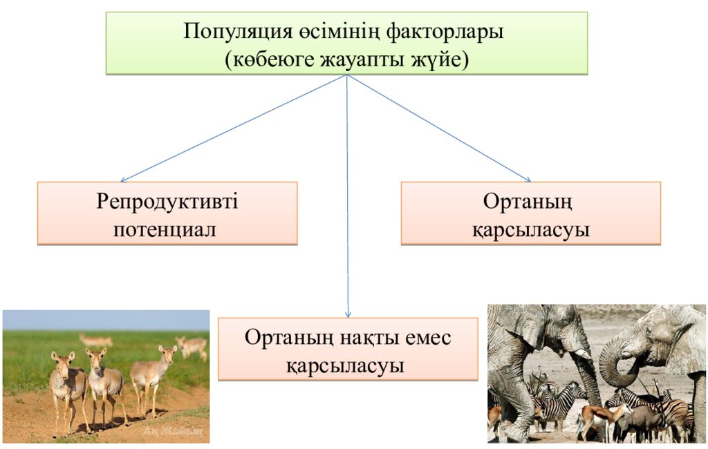 Популяция өсімінің факторлары (көбеюге жауапты жүйе) Репродуктивті потенциал Ортаның қарсыласуы Ортаның нақты емес қарсыласуы