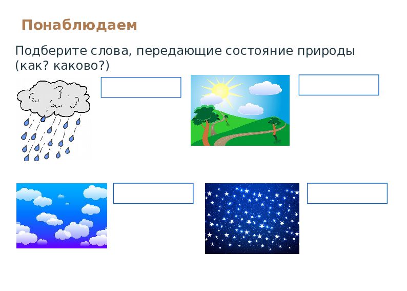 Слайд 10: Подберите слова, передающие состояние природы (как? каково?) Понаблюдаем