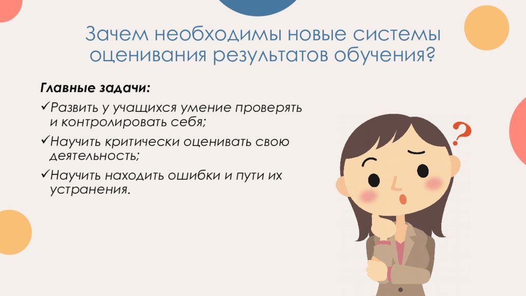 1 2 3 Поощрение активности и самостоятельности учеников; Расширение возможности обучения и самообучения; Развитие навыков рефлексивной и оценочной деятельности учащихся; Формировать умение учиться – ставить цели, планировать и организовывать собственную учебную деятельность; 4