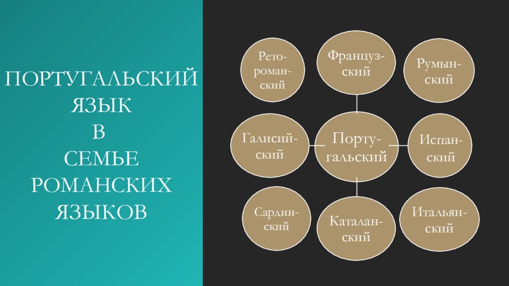 Порту-гальский Француз- ский Каталан- ский Галисий- ский Румын- ский Итальян- ский Сардин- ский Рето- роман- ский Испан- ский