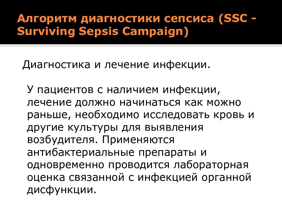 Слайд 46: Алгоритм диагностики сепсиса (SSC - Surviving Sepsis Campaign)