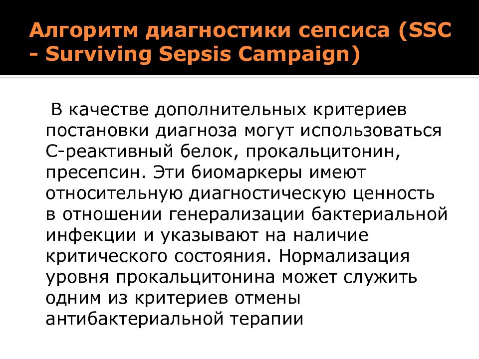 Слайд 47: Алгоритм диагностики сепсиса (SSC - Surviving Sepsis Campaign)