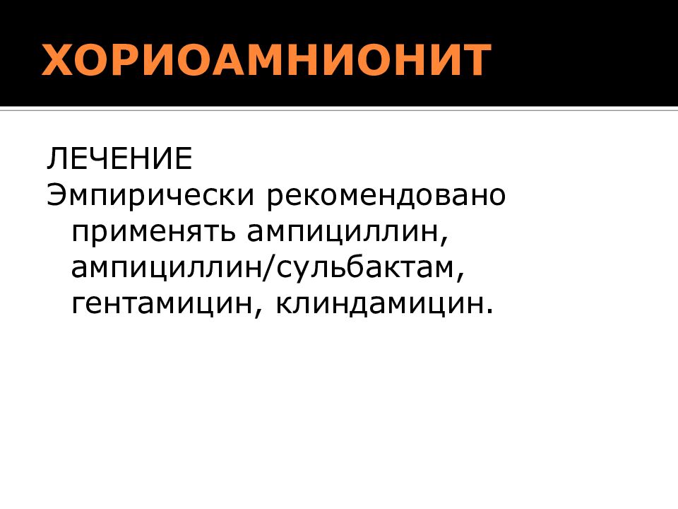 ЛЕЧЕНИЕ Эмпирически рекомендовано применять ампициллин, ампициллин / сульбактам, гентамицин, клиндамицин.