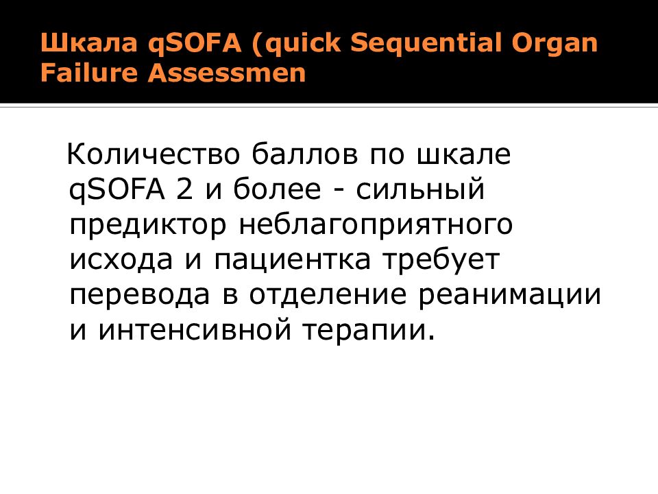 Слайд 39: Шкала qSOFA (quick Sequential Organ Failure Assessment