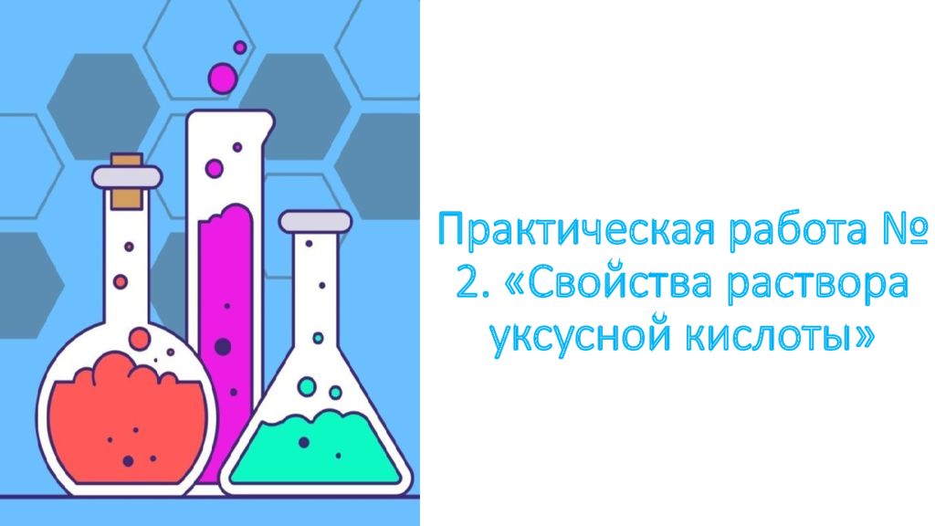 Последний слайд презентации: Практическая работа № 2. «Свойства раствора уксусной кислоты»