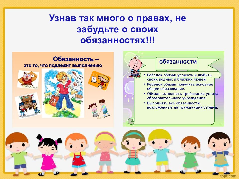 Последний слайд презентации: ПРАВА СВОИ ЗНАЙ, А ОБЯЗАННОСТИ НЕ ЗАБЫВАЙ». БЕСЕДА