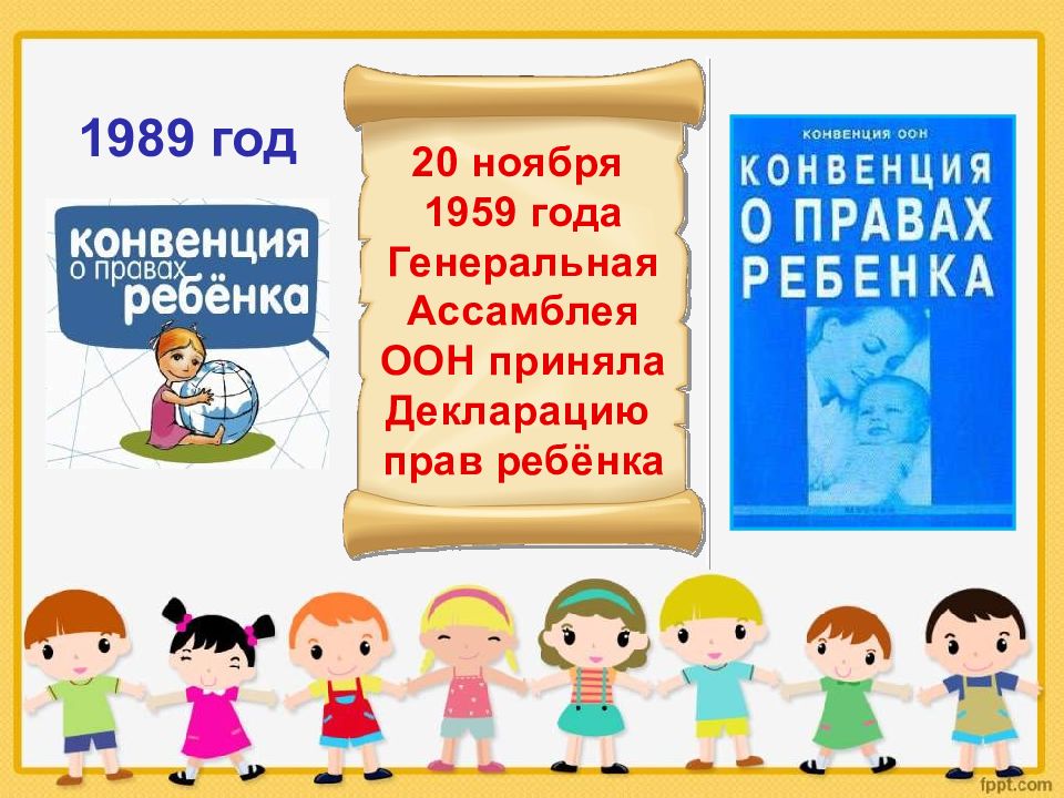 20 ноября 1959 года Генеральная Ассамблея ООН приняла Декларацию прав ребёнка 1989 год