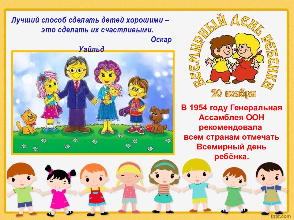 В 1954 году Генеральная Ассамблея ООН рекомендовала всем странам отмечать Всемирный день ребёнка. Лучший способ сделать детей хорошими – это сделать их счастливыми. Оскар Уайльд