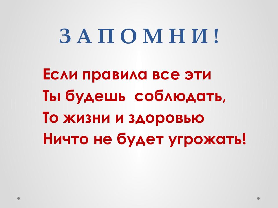 Если правила все эти Ты будешь соблюдать, То жизни и здоровью Ничто не будет угрожать!
