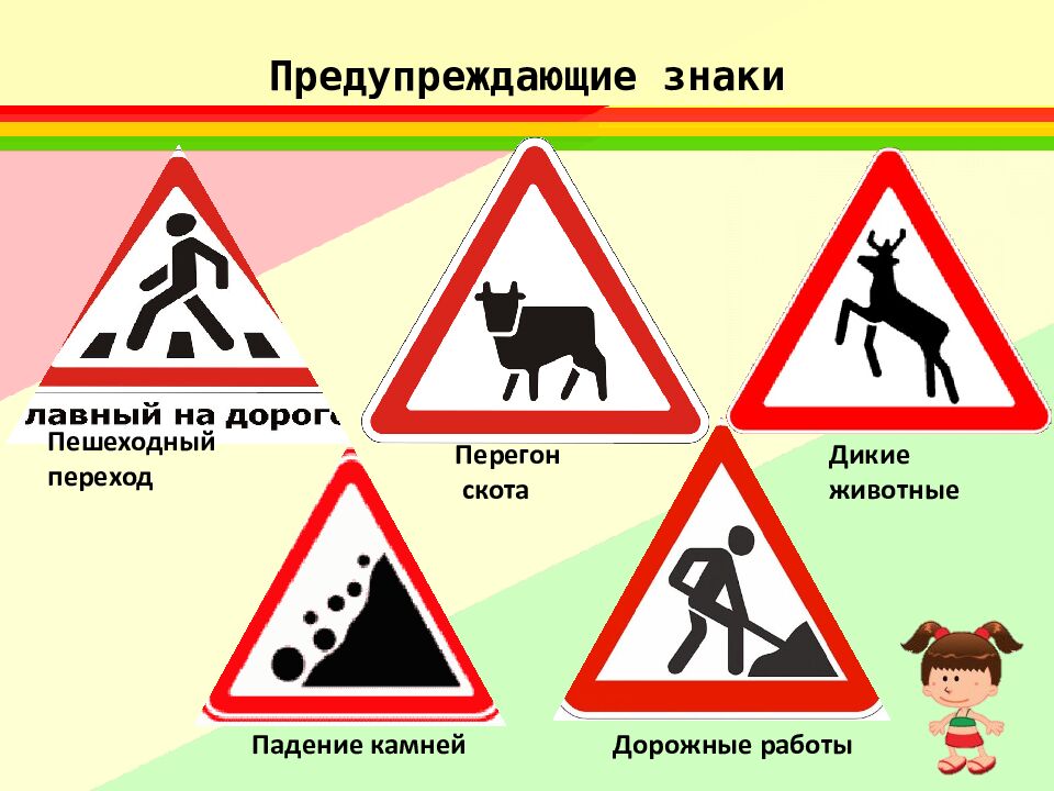 Пешеходный переход Перегон скота Дикие животные Падение камней Дорожные работы