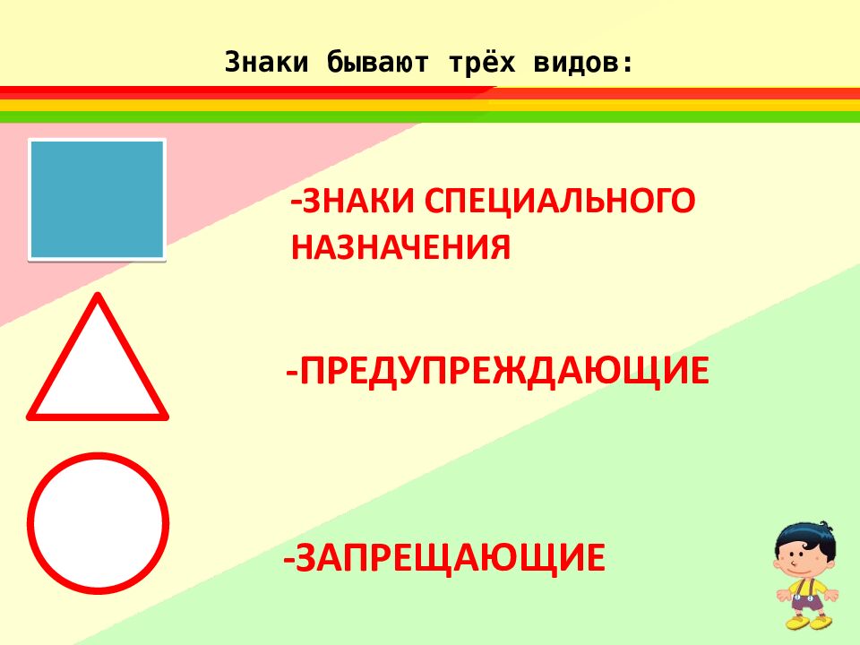 Слайд 9: Знаки бывают трёх видов: