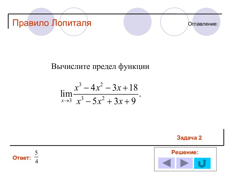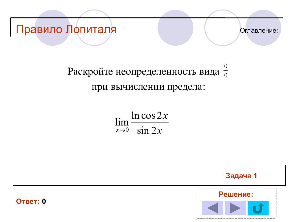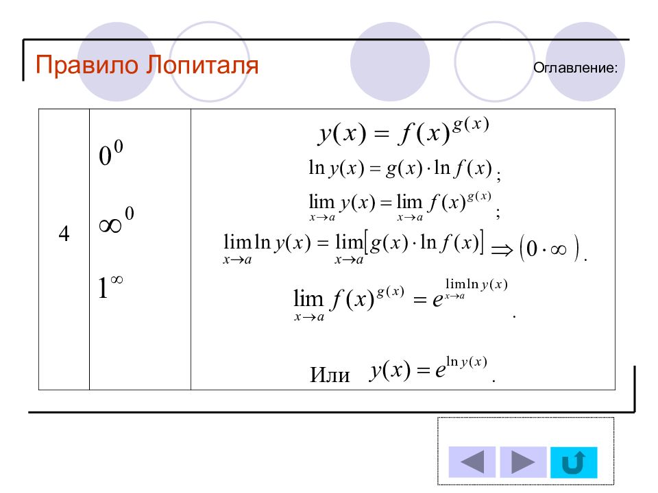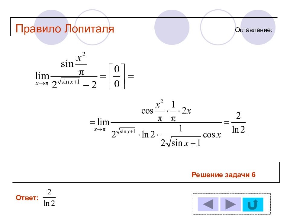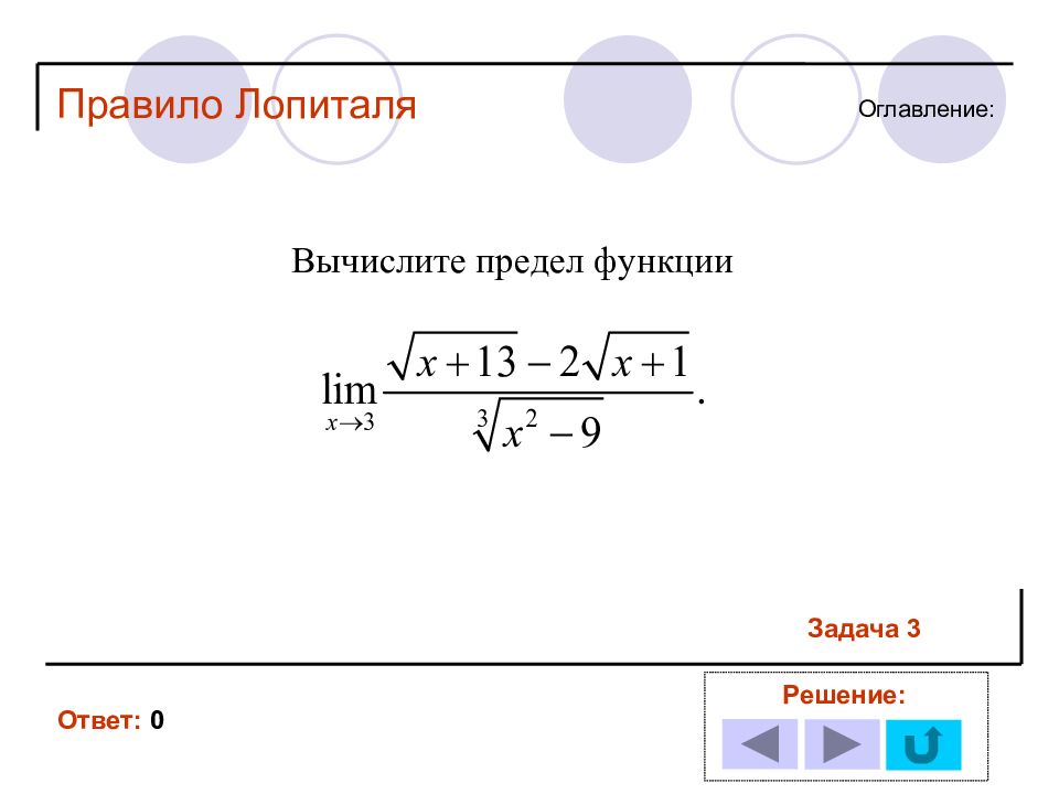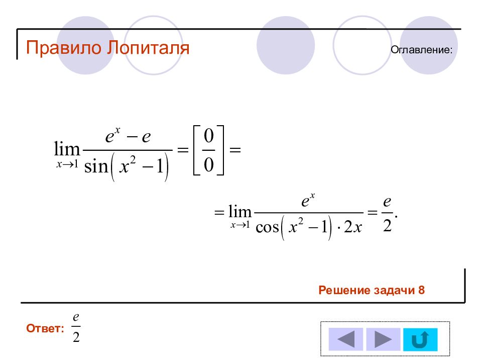 1 11 2 12 3 13 4 14 5 6 7 8 9 10 Решение задачи № : Оглавление : Правило Лопиталя