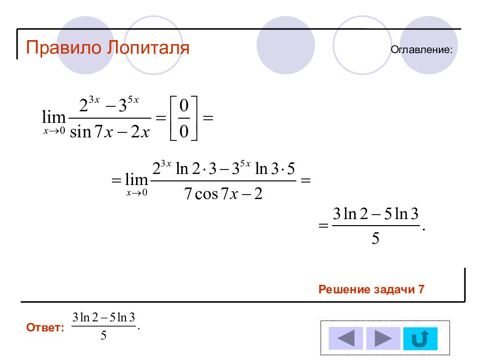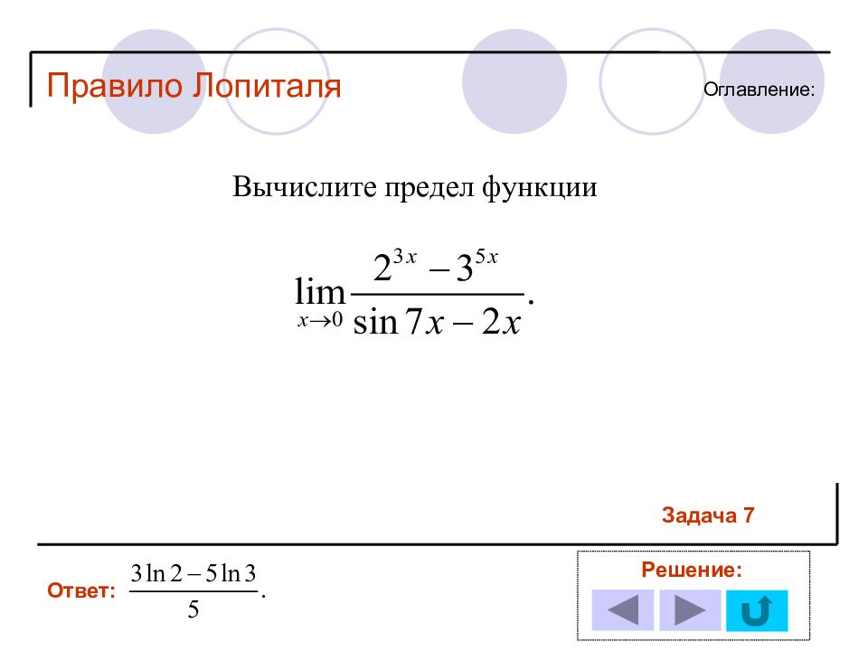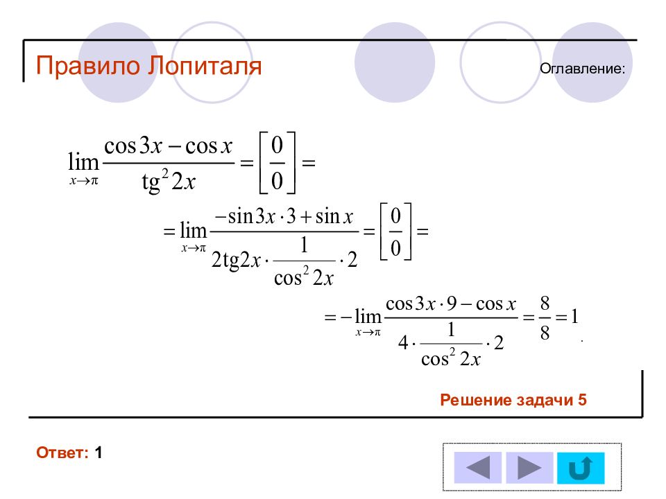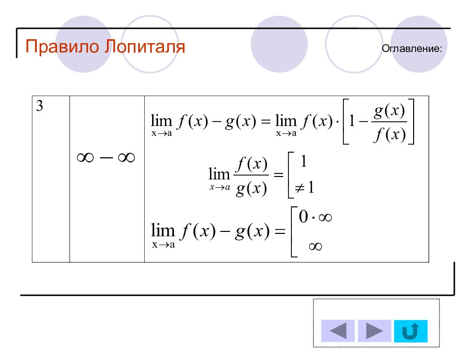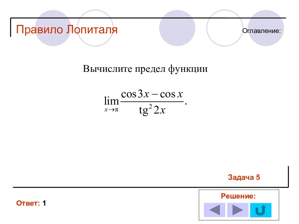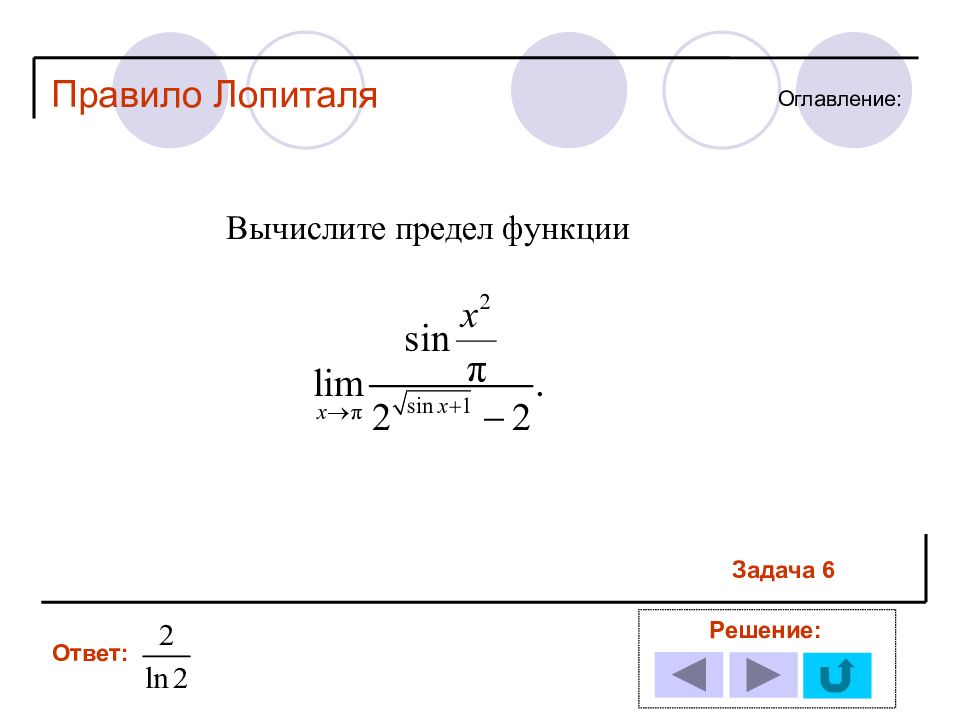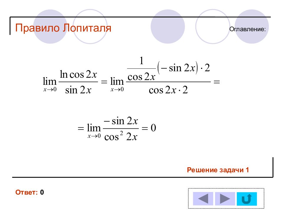 1 11 2 12 3 13 4 14 5 6 7 8 9 10 Решение задачи № : Оглавление : Правило Лопиталя