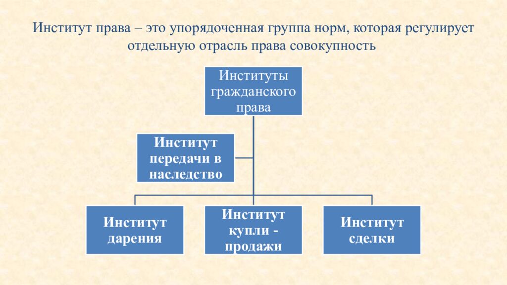 Слайд 20: Институт права – это упорядоченная группа норм, которая регулирует отдельную отрасль права совокупность