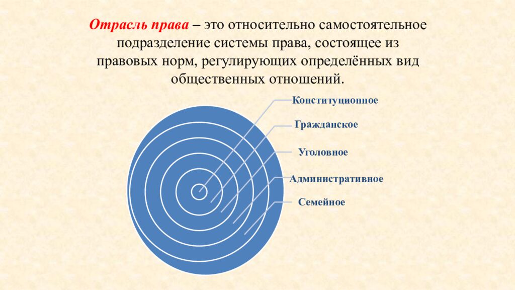 Слайд 18: Отрасль права – это относительно самостоятельное подразделение системы права, состоящее из правовых норм, регулирующих определённых вид общественных отношений
