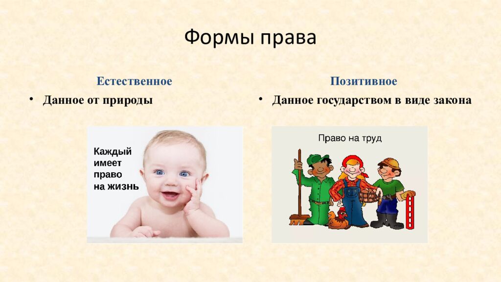 Естественное Данное от природы Позитивное Данное государством в виде закона