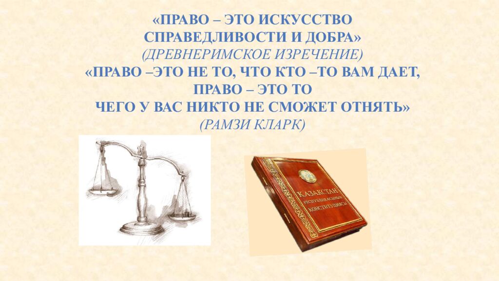 «Право – это искусство справедливости и добра» (древнеримское изречение) «право –это не то, что кто –то вам дает, право – это то Чего у вас никто не сможет отнять» ( Рамзи Кларк)