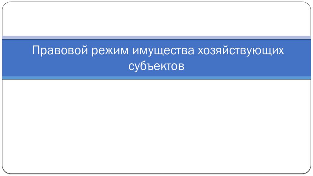 Первый слайд презентации: Правовой режим имущества хозяйствующих субъектов