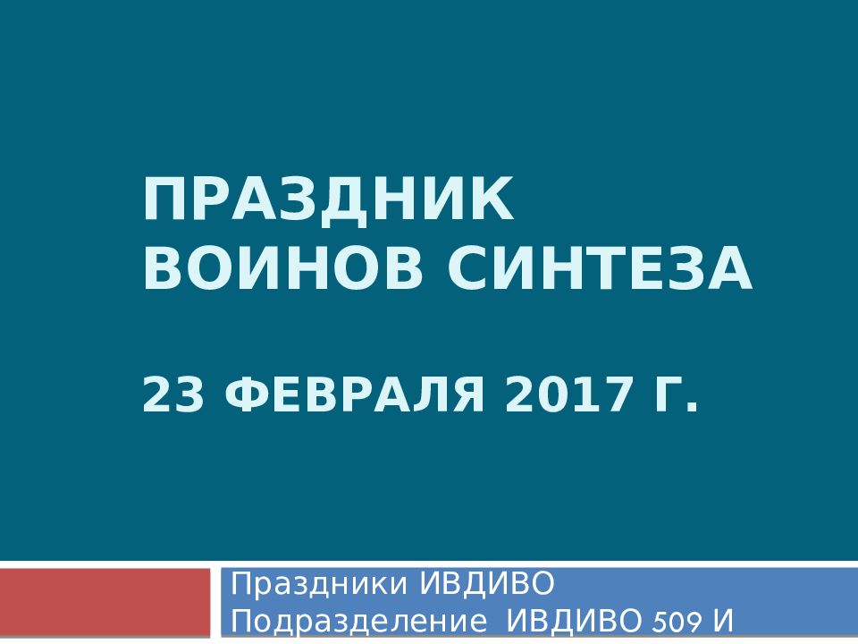 Последний слайд презентации: ПРАЗДНИК ВОИНОВ СИНТЕЗА 23 ФЕВРАЛЯ 2017 г. Праздники ИВДИВО Подразделение