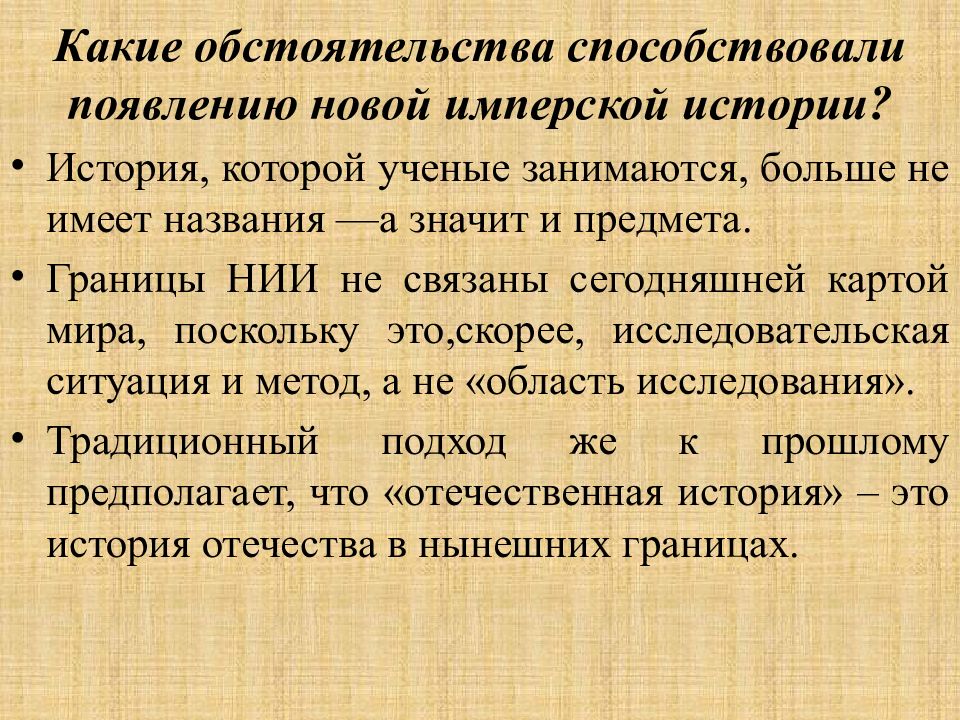 Слайд 8: Какие обстоятельства способствовали появлению новой имперской истории ?